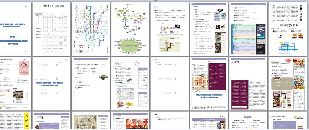 不過啊~這次去大阪之前我是個無業遊民,一天有24小時可以揮霍,才有這麼多時間可以做出一本將近50頁的旅行手冊阿,換成一般有工作的人,